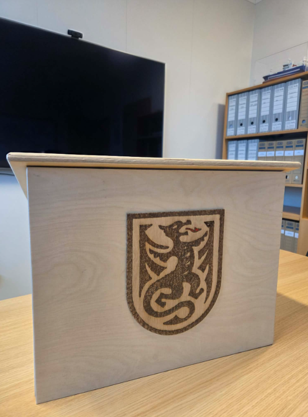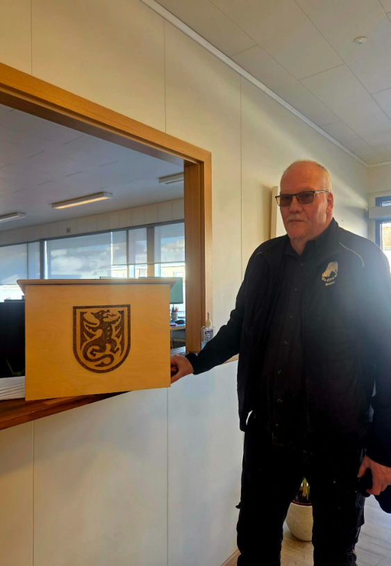 Nýverið færði Vopnafjarðarskóli sveitarfélaginu fallega gjöf þegar afhent var púlt sem smíðað hefur verið í skólanum. Smíðakennarinn Baldur Hallgrímsson á heiðurinn af verkinu, en hann hannaði og smíðaði púltið sem prýtt er byggðamerki Vopnafjarðar.